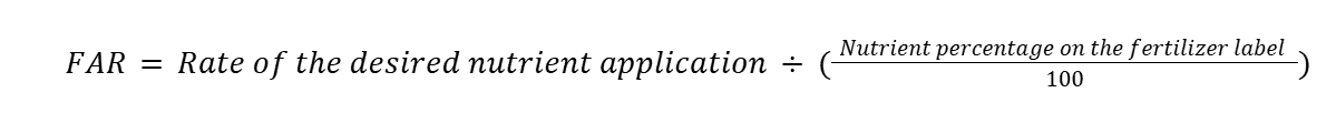 First, you’ll have to get the fertilizer application rate (FAR) to know the amount of a certain nutrient (usually one of the NPK) you need to apply per a given area. The formula is: