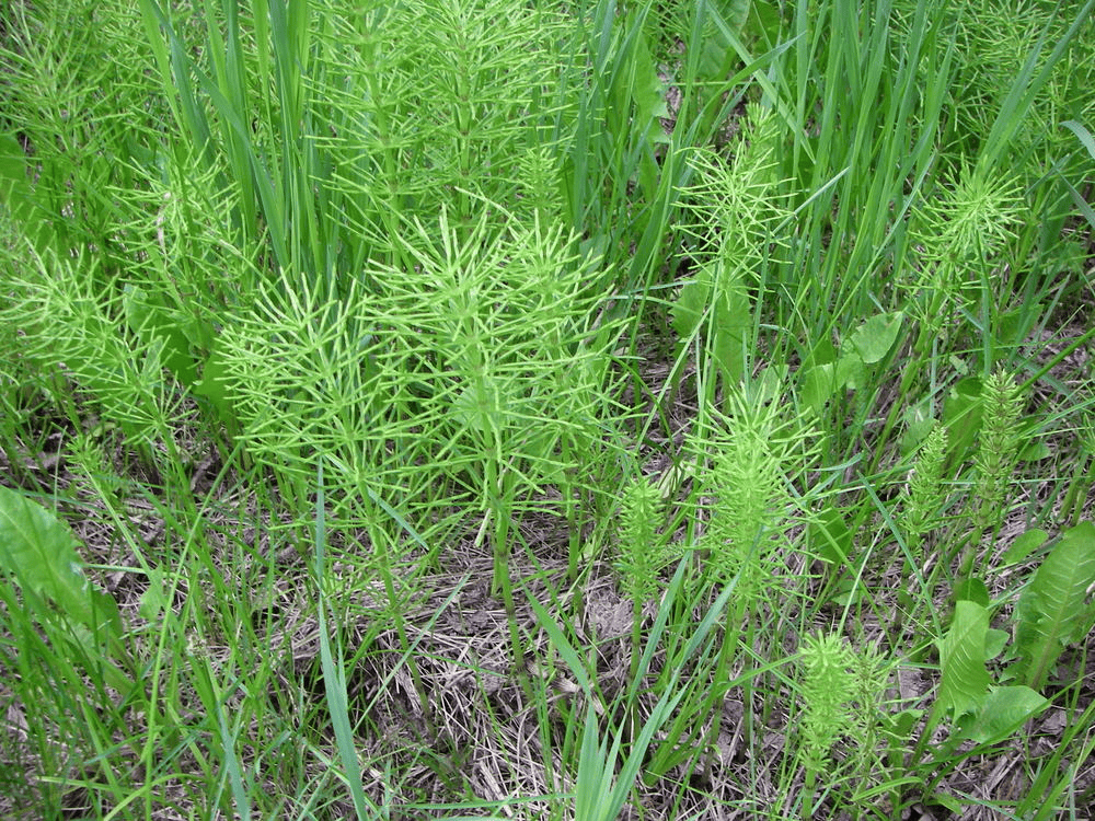 Horsetail weed is a hardy plant that grows wildly even in dry soil conditions.